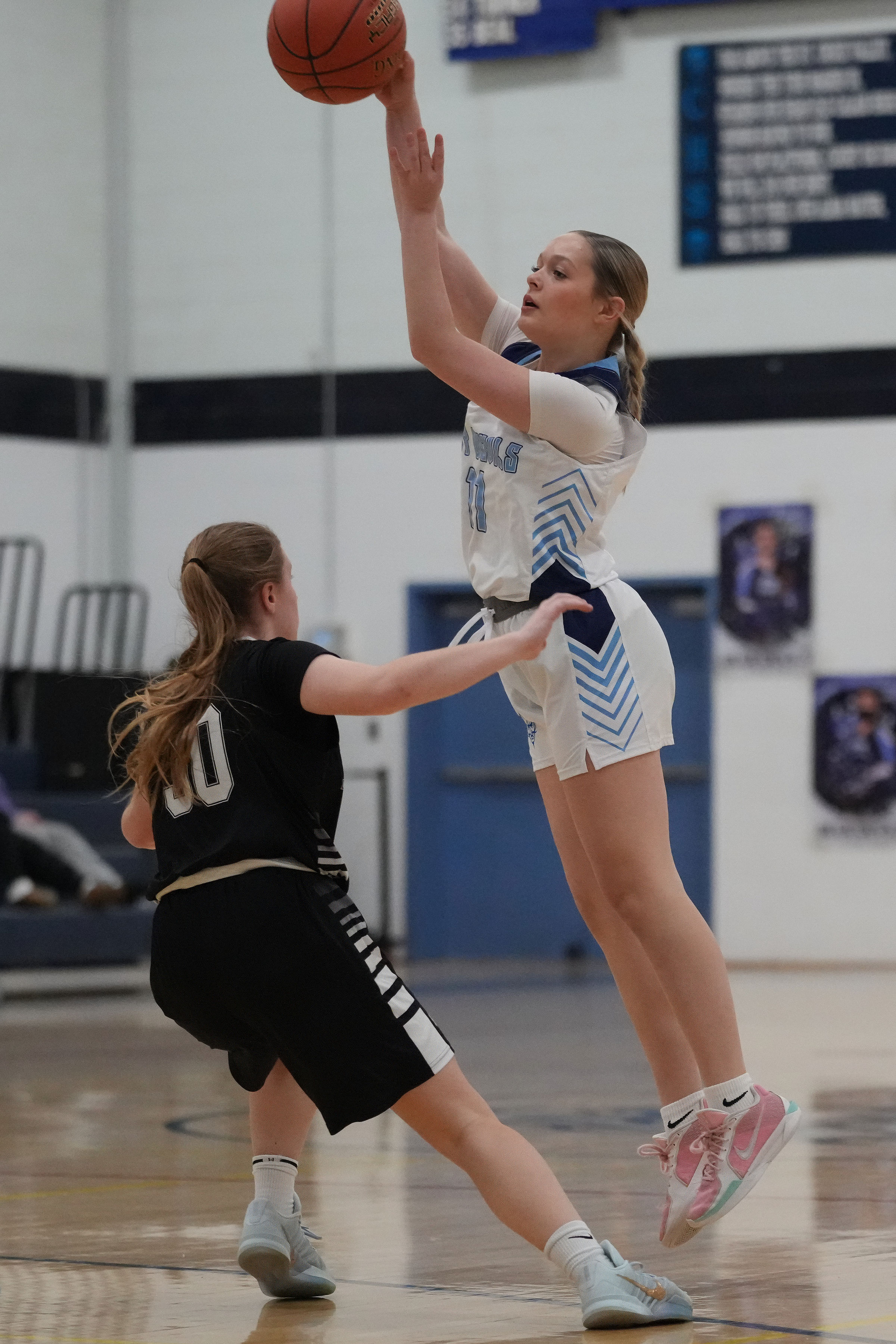 Hannah aims to drive the ball forward to clinch the victory for the JV Lady Depths.
